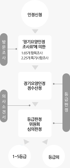일정한 절차에 따라 장기요양급여를 받을 수 있는 권리(수급권)가 부여되는데 이를 장기요양인정이라고 합니다